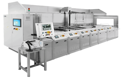 The Crest DMS modular ultrasonic system provides a scalable, configurable platform that can grow and evolve with your cleaning requirements. Its flexible architecture allows you to add or reconfigure wet process stages and design layouts over time, with the option to integrate automation or operate manually as your workflow demands. A wide selection of plug‑and‑play features is available, including integrated filtration, multiple ultrasonic frequencies, automatic fill and drain functions, conductivity monitoring, and more. New process modules such as passivation tanks and vacuum dryers can be incorporated into the line, enabling both cleaning and post‑treatment within a single modular framework. All process tanks are built with rounded interior corners and electropolished surfaces to promote effective cleaning, easy maintenance, and reduced contamination entrapment. Typical ultrasonic tank configurations include: 12″ x 18″ (in inches)tanks equipped with 40 kHz Ultrasonics at 1000 watts of power. 18″ x 26″ (in inches) tanks available with 132 kHz Ultrasonics at 2000 watts. Additional single‑frequency options (25/40/58/132/192 kHz) as well as patented dual‑bonded combinations of these frequencies for advanced process tuning. Optional plate transducer technology featuring magasonic sweep frequencies at 280/360/470/720/1000 kHz for ultra‑fine cleaning applications. Support modules are designed to enhance process control and cleanliness: Pump and filtration units with quick‑connect hoses and available bag or sub‑micron filter housings. All stainless‑steel piping and valves for durability and chemical compatibility. Automatic filling and draining options to streamline operation and reduce manual handling. Detergent metering at wet tank fill points to maintain consistent chemistry. Spray and Air-Knife headers on all rinse modules for effective rinsing and water removal. Monitoring packages for conductivity, resistivity, pH, or Brix, designed for rapid installation and process feedback. Integrated spill detection sensors within cabinets for added safety. Articulating, bottom‑mounted Air-Knife assemblies in dryer modules to optimize drying of complex geometries. Manual spray and blow‑off wands for targeted cleaning and drying where needed.